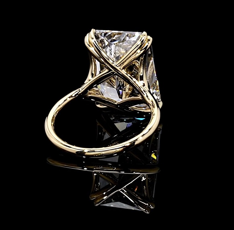 Center Stone: 11.00 ct Radiant-Cut Lab-Grown Diamond (F / VS1, Excellent/Excellent cut)