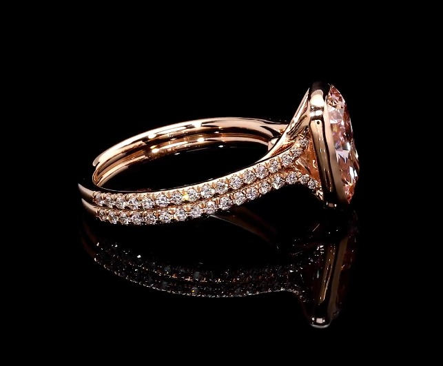 • 18k Rose Gold: The band is made of 18k rose gold, offering a warm, luxurious touch that perfectly complements the pink diamond.