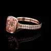 Handcrafted by our expert jewelers, the cushion-cut diamond is set in a dual bezel setting, which provides both protection and stunning visual appeal. Surrounding the diamond is a two-row pavé band, adding extra sparkle and contrast to the radiant pink stone.