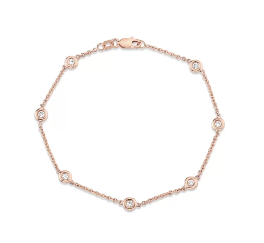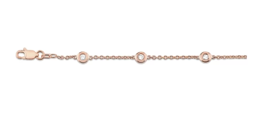 The diamond-cut rose gold chain enhances light reflection, while the floating bezel diamonds move gracefully with every gesture, creating a subtle yet captivating shimmer. As part of Ella Landon’s Ethical Essentials Collection, this bracelet fuses contemporary design with timeless elegance, making it a signature heirloom for today’s conscious collector.