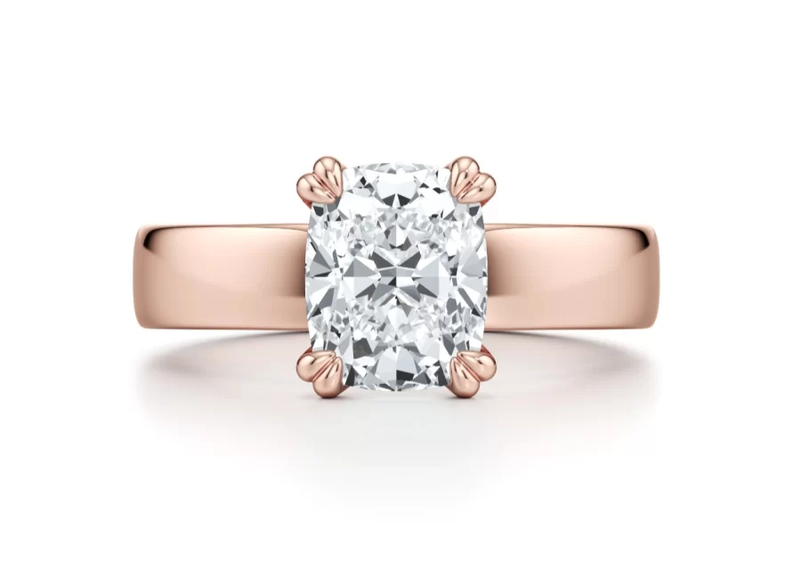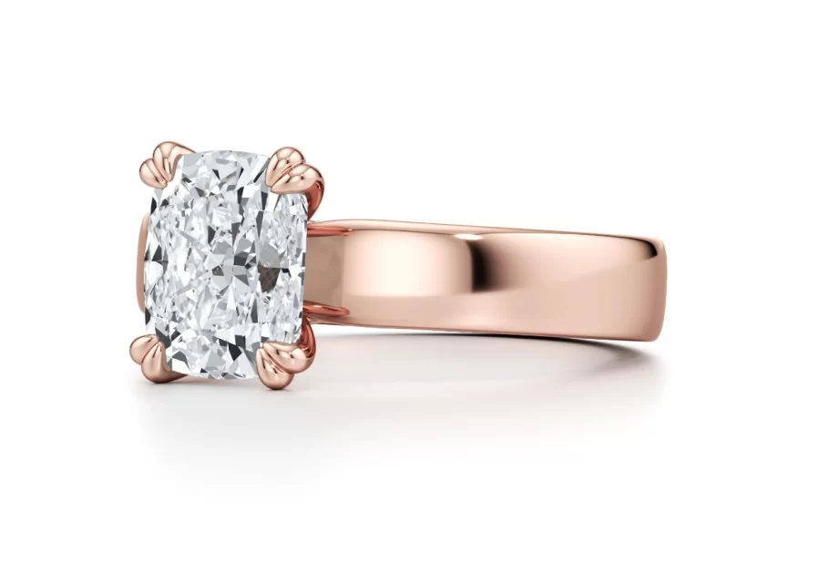 Alecia Solitaire Lab Diamond Engagement Ring – 4.00 ct Cushion Cut in 14k Rose Gold | Double Prong Setting & High-Polish Band