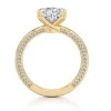 Cradled by our exclusive double prong setting, the center stone commands attention with sculptural strength and refined sophistication. The clean, 2.50mm band is elegantly hand-set with pavé diamonds, creating a radiant shimmer that catches light from every angle, perfectly balancing subtlety with sparkle.
