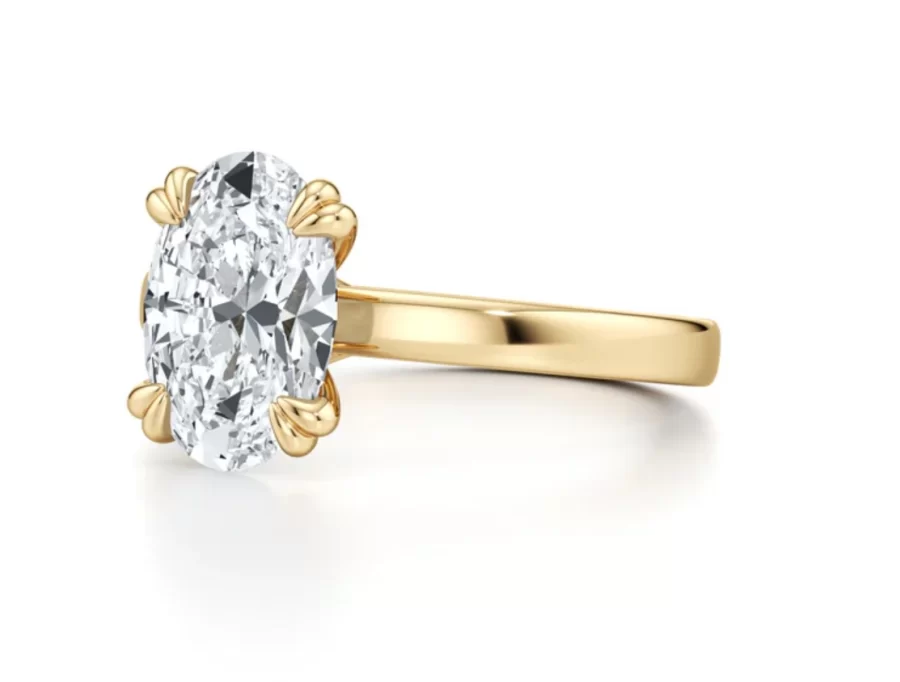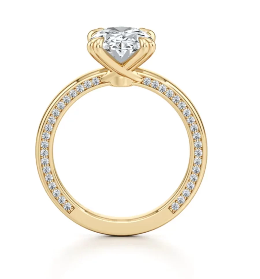 Alecia Oval Solitaire Lab Diamond Engagement Ring – 3ct Pavé Band & Double Prong Setting | Gender-Neutral Solitaire, Ethical Lab-Grown Diamonds