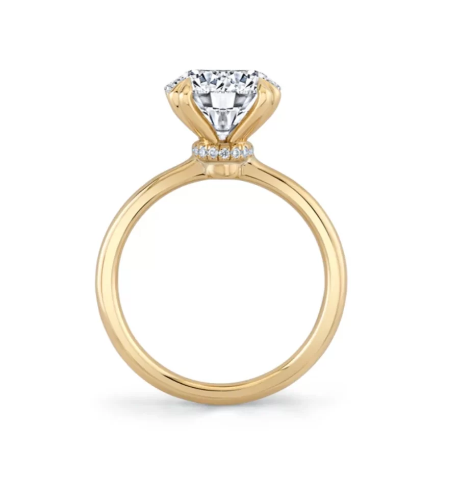• Design Highlights: Crown-inspired pavé under gallery that enhances the diamond’s brilliance with hidden sparkle