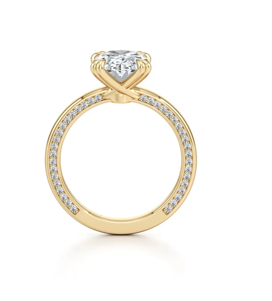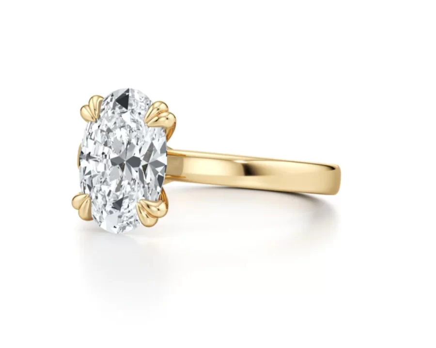 Center Stone: 2.00ct Oval Lab-Grown Diamond, prized for brilliance and rare elongated silhouette