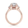 The high‑polish 18K rose gold band glimmers, while pavé diamonds trace the bridge and gallery—delicately revealing a hidden halo that shimmers softly beneath the setting. This ring is designed to captivate quietly and hold attention eternally. Chelseia isn’t just jewelry; it’s a sculptural declaration of love, clarity, and modern devotion.