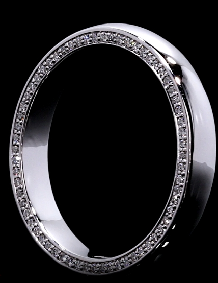 Setting: Channel-set or pavé-style diamond accents along the outer edge