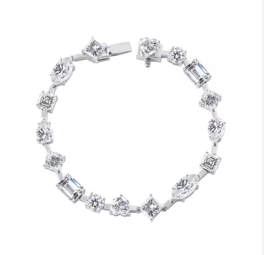 Experience the pinnacle of heirloom-quality luxury with the Ella Landon 8.75ct Lab-Grown Diamond Symphony Bracelet. Handcrafted by our master jeweler, this statement bracelet features 8.75 carats of ethically sourced lab-grown diamonds in a breathtaking mix of round, emerald, marquise, and princess cuts, each selected for exceptional clarity, color, and brilliance.