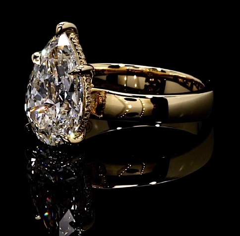 • Center Stone: 4.50ct Pear-Shaped Lab-Grown Diamond, selected for its exceptional cut, clarity, and brilliance